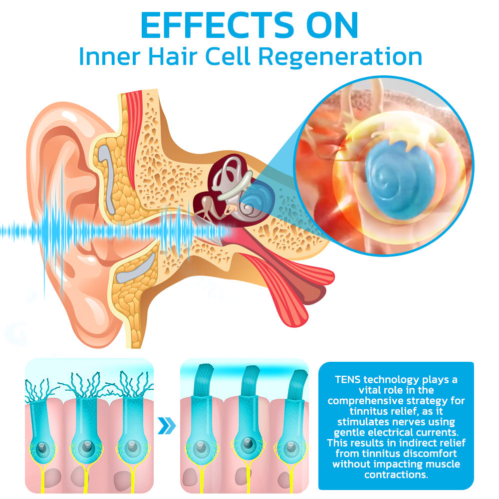 ✔ Revitalizing Ear Hair Cells: The inherent properties of Red Light TENS microcurrent for tinnitus, when precisely administered, activate latent regenerative potential within damaged cells. This triggers a series of cellular responses, leading to the restoration of impaired cellular structures and the promotion of cell division.